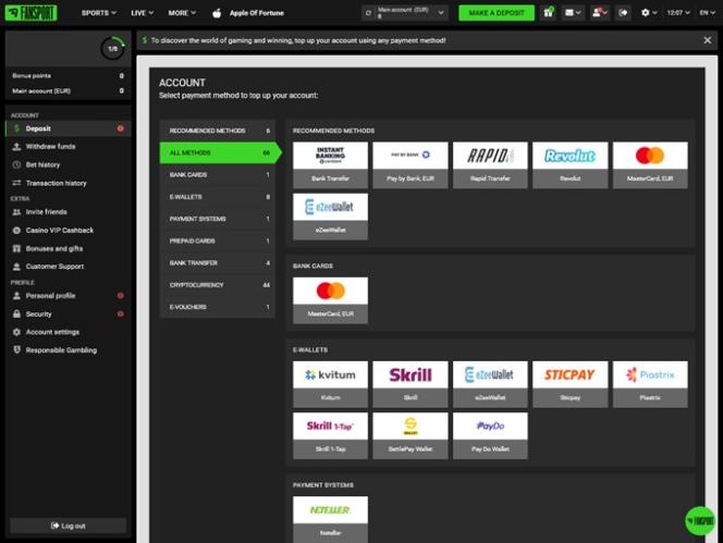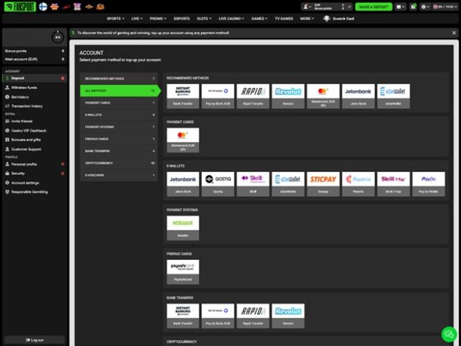 À primeira vista, o Fansport Casino concentra-se principalmente em oferecer aos seus jogadores opções de apostas esportivas. Mas, ao analisar mais detalhadamente, você perceberá que a marca apresenta uma vasta biblioteca de caça-níqueis online, jogos com crupiês ao vivo, jogos de mesa, jogos de crash e outras atividades de cassino online. Essa fantástica variedade de opções de entretenimento é complementada por um lucrativo plano promocional repleto de diversos bônus. O cassino aceita criptomoedas e métodos bancários tradicionais, permitindo que você deposite e saque de várias maneiras.