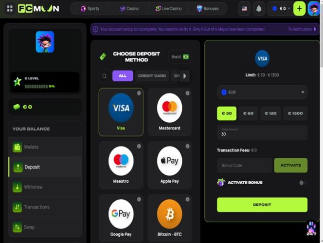 Na página inicial, os jogadores também podem visualizar todos os métodos de pagamento disponíveis, as promoções oferecidas, o programa de indicação e o programa de fidelidade do qual podem participar. A marca apresenta um menu expansível no canto superior esquerdo do site para examinar todas as opções de entretenimento em detalhes. A partir daí, você pode acessar seus jogos favoritos e as seções de apostas esportivas. Além disso, os jogadores podem visitar a página sobre jogo responsável , suporte ao cliente e perguntas frequentes (FAQ) aqui.