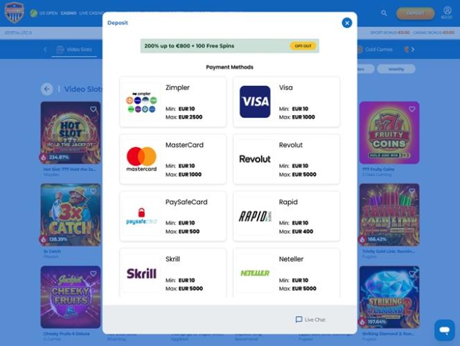 Se o depósito for feito por cartão de crédito ou débito, a conta só será creditada após o cassino receber a aprovação e o código de autorização da instituição emissora do pagamento.