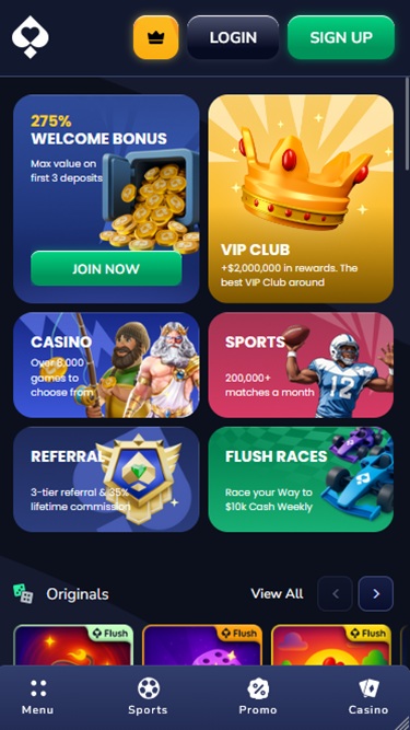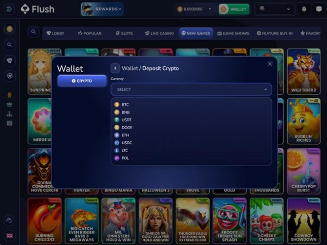 Caso você prefira jogos de cassino com criptomoedas, a categoria Flush Originals pode se tornar a sua favorita, repleta de jogos de sucesso como Dice, Crash, Mines, Wheel, HiLo, Limbo, Plinko, Keno e muito mais. Mas isso não é tudo! Vamos conferir juntos o restante da oferta.