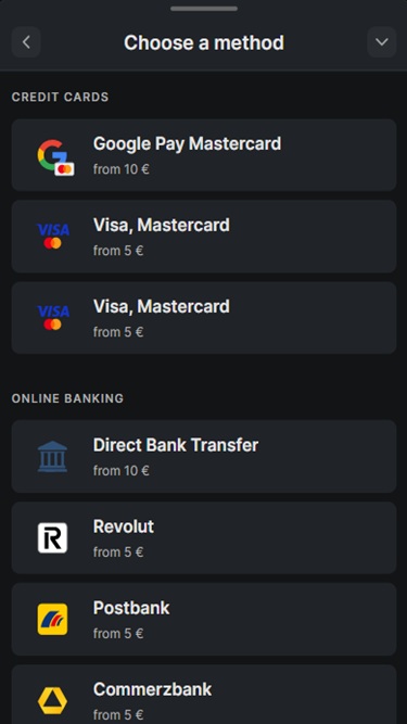 💰 Depósito mínimo€5