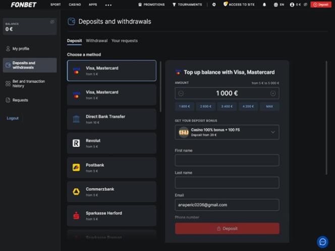 O Fonbet Casino é um site de jogos de azar moderno que recebe principalmente jogadores da Alemanha e oferece uma ampla seleção de jogos e opções de apostas esportivas. A marca apresenta uma sólida seleção de caça-níqueis com dinheiro real, jogos com crupiês ao vivo, jogos de mesa e jogos instantâneos, além de oferecer diversos bônus, promoções e torneios nos quais os jogadores podem participar.