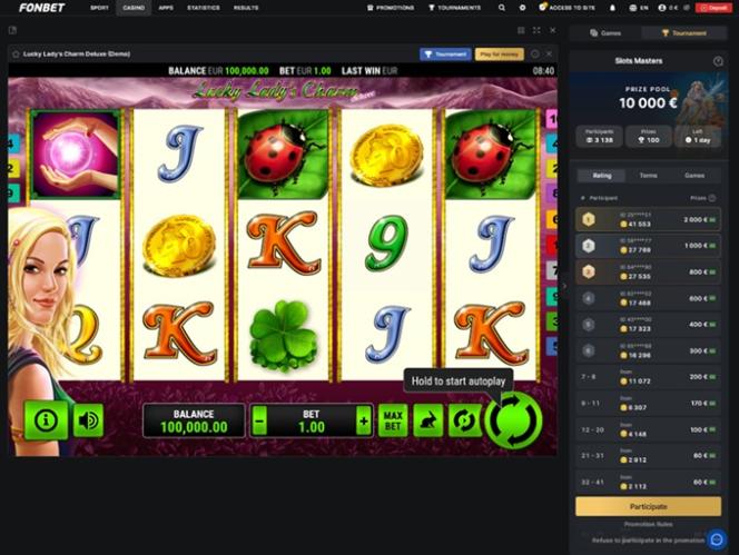 A maioria dos jogadores também ficará satisfeita ao ver que o Fonbet Casino oferece uma ampla gama de promoções e bônus. Assim que você criar uma conta, poderá reivindicar um generoso bônus de boas-vindas e, posteriormente, aproveitar diversas outras ofertas, como cashback e bônus de recarga. O cassino também realiza torneios regularmente.