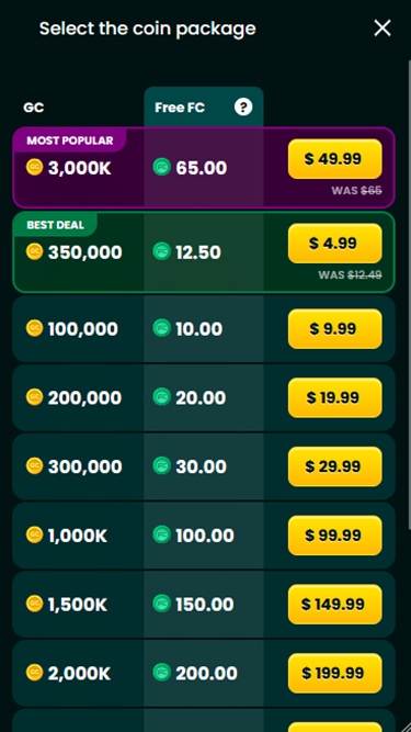 Além de um programa de fidelidade muito vantajoso, os jogadores podem esperar desfrutar de uma variedade de promoções exclusivas e recompensadoras. Ao registrar sua conta, você receberá um generoso pacote de boas-vindas em Moedas de Ouro, permitindo que você passe bastante tempo explorando e jogando todos os jogos.
