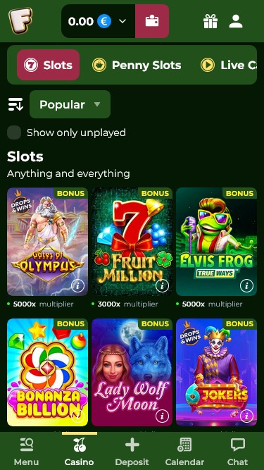 Para ajudar você a encontrar o jogo perfeito, o cassino dividiu sua seleção de slots em várias subcategorias, como Populares, Novidades, Drops&Wins, Slots de Centavos, etc. Para sua conveniência, compilamos uma pequena lista de jogos de cada categoria para você começar imediatamente.