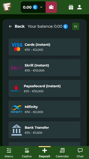 💰 Depósito mínimo€10