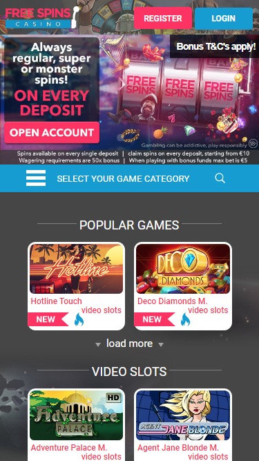 O Free Spins Casino é alimentado por Net Entertainment, Amatic Industries, Barcrest, Big Time Gaming, Thunderkick, Bally Technologies, Blueprint Gaming, NextGen, WMS and Scientific Games , o que lhe confere uma excelente biblioteca de jogos acessíveis através do seu navegador web, sem necessidade de descarregar qualquer software para apostar. Existe também uma versão móvel para quem preferir jogar no tablet ou smartphone.Outros jogos