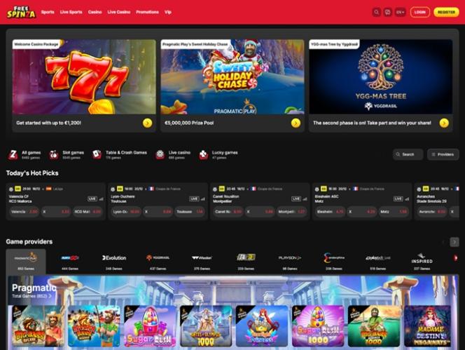 O Free Spinza é um cassino online moderno com uma ampla seleção de jogos, como caça-níqueis com dinheiro real, jogos com crupiês ao vivo, jogos de mesa e jogos de crash, além de uma seção robusta de apostas esportivas. A marca aceita jogadores da Alemanha, Áustria, Finlândia, Suécia e Holanda, prometendo uma ótima experiência de jogo com jogos, promoções e bônus.