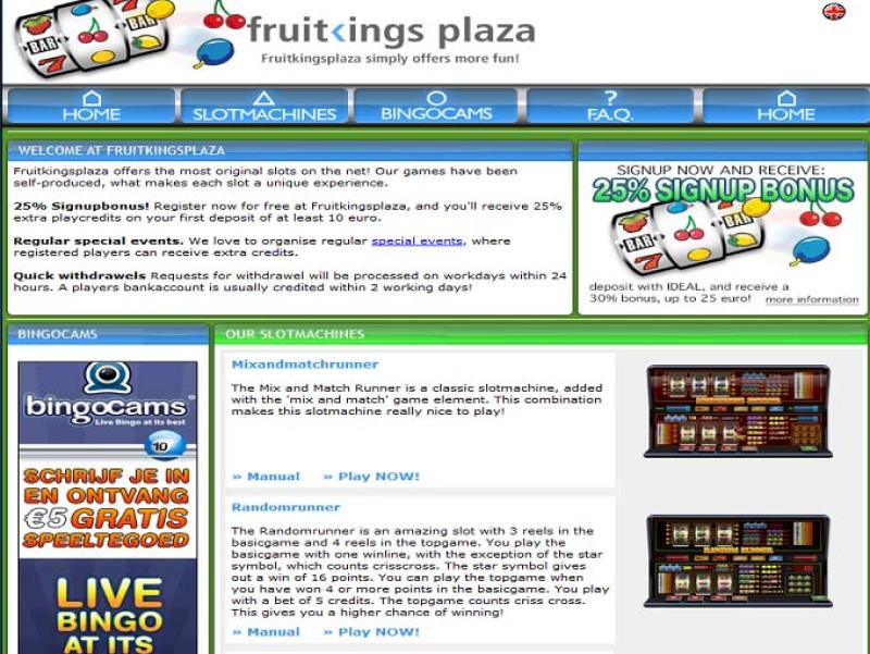 O FruitkingsPlaza Casino é um site de apostas online fundado em 2006 e que atende exclusivamente jogadores da Holanda. O cassino tem um histórico de pagamentos rápidos e excelente suporte, embora o site e os jogos sejam bastante antigos.Informações do cassino