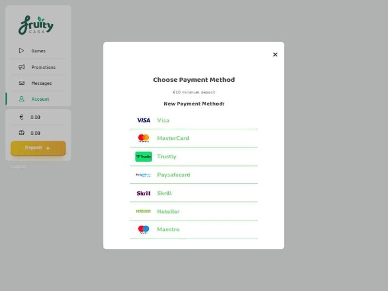 O FruityCasa Casino é um site de apostas online que abriu suas portas em 2014. O cassino pertence e é operado pela White Hat (Holding) Limited e oferece seus serviços de apostas no Reino Unido. O cassino possui uma biblioteca de jogos muito extensa e é elogiado por seus termos e condições justos em suas promoções, mas os tempos de pagamento são mais lentos do que os de muitos outros sites de apostas online. Nosso site parceiro realizou uma entrevista com o FruityCasa Casino, que fornece algumas informações interessantes sobre o site, e que pode ser lida aqui .Informações do cassino