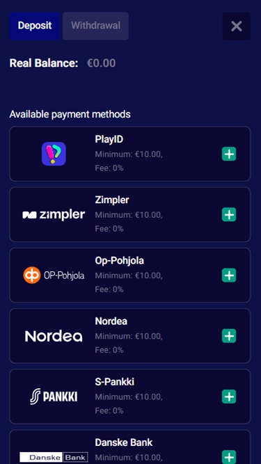 Os termos e condições parecem ser justos para os jogadores em Frumzi, sem nada que se destaque como injusto.As opções bancárias da Frumzi estão listadas abaixo, incluindo as opções de depósito e saque.