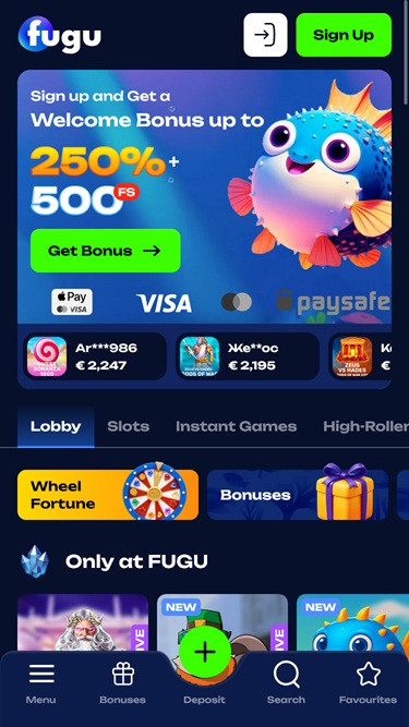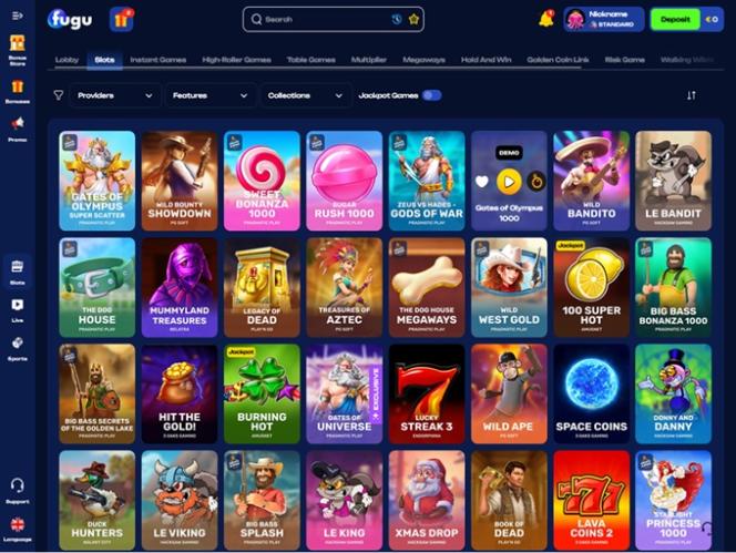 Lançado em 2024, o Fugu Casino atraiu um grande público de jogadores do Canadá, Alemanha, Áustria, Suíça e Irlanda, oferecendo um catálogo robusto de jogos de cassino, opções de apostas, promoções e bônus. A marca oferece uma vasta biblioteca de caça-níqueis, jogos com crupiês ao vivo, jogos de mesa e jogos de azar instantâneos, tornando-se um local perfeito para praticamente todos os jogadores.
