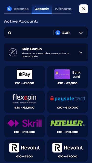 💰 Depósito mínimo€10