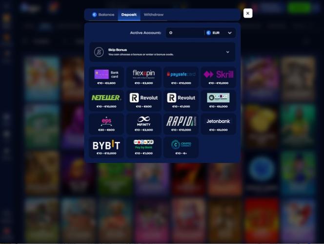 O cassino aceita tanto moedas fiduciárias quanto criptomoedas.