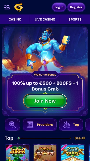 Como o nome da marca sugere, o tema central do site gira em torno de um gênio místico, lindamente animado e apresentado aos jogadores na página principal do cassino. Os designers fizeram um trabalho fantástico ao proporcionar aos jogadores um ambiente intuitivo, visualmente atraente e fácil de navegar, complementado por uma paleta de cores atraente em tons de azul escuro e roxo.