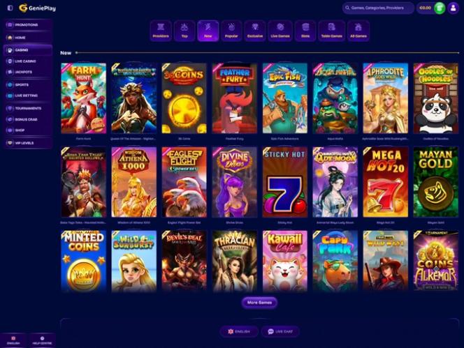 Os jogadores que decidirem criar uma conta no GeniePlay Casino terão acesso a diversas atividades de jogos de azar. A extensa biblioteca de produtos inclui todos os jogos de cassino populares, como caça-níqueis online, jogos com crupiês ao vivo , jogos de mesa e jogos com jackpot. Além disso, o site conta com uma seção completa de apostas esportivas.