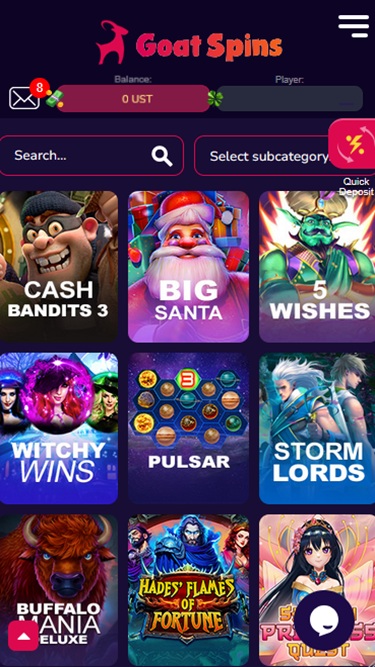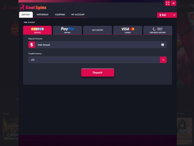O Goat Spins Casino é um cassino de criptomoedas voltado principalmente para jogadores dos Estados Unidos. No momento da nossa visita, ele operava sem licença de jogo.