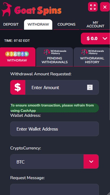 Se eu começar a parecer um disco riscado ao falar sobre essa família em crescimento, MrO, Eternal, Detective, Sloto Tribe e aqui Goatspins, então leve isso como algo positivo, porque depois do seu KYC, o tempo de saque é de cerca de 20 minutos, no máximo. Sem problemas, só não ultrapasse 5 bônus entre depósitos neste e você estará tranquilo.