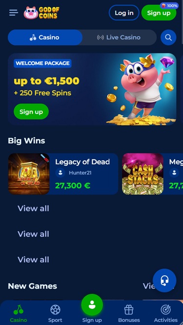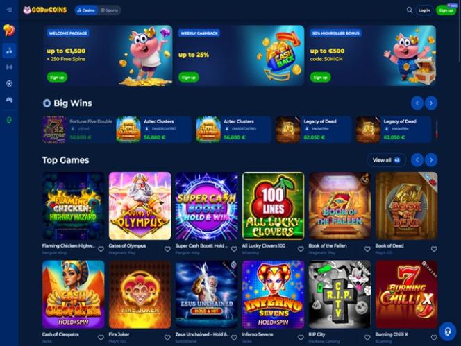 O God Of Coins Casino é um site de apostas esportivas e cassino online constituído sob as leis de Curaçao e voltado para jogadores da Polônia, Grécia, Portugal e Austrália. No momento da nossa visita, o cassino estava em processo de obtenção de uma licença emitida pelo GCB - Gaming Control Board.