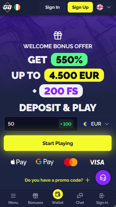 New Customer Offer. T&C’s Apply. 18+.This offer is not available for players residing in Ontario. New Customer Offer. T&C’s Apply. 19+. Play Responsibly. Min deposit: 10 EUR. The bonuses are valid for 10 days after activation. Max bet: 4,6 EUR.