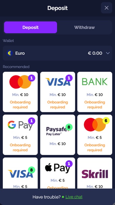 Os jogadores precisarão concluir os procedimentos KYC antes de efetuar o saque, enviando documentos pessoais.