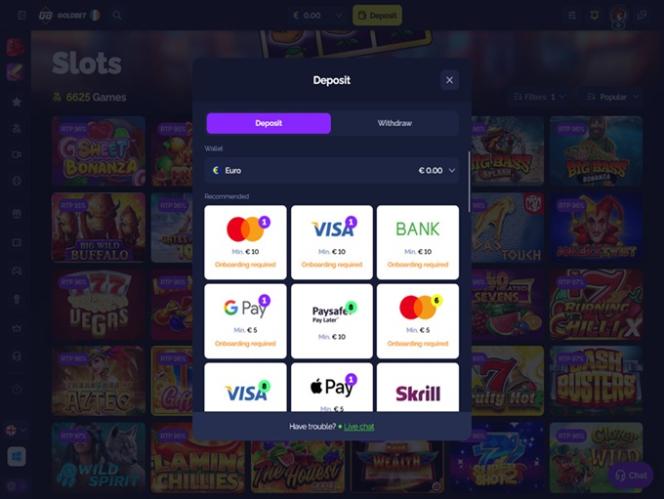 Lançado inicialmente em 2000, o GoldBet é um dos cassinos online mais antigos, tendo passado por altos e baixos. No entanto, conseguiu ressurgir e oferecer aos jogadores uma ampla variedade de jogos de cassino e opções de apostas esportivas. Os jogadores podem desfrutar de centenas de caça-níqueis online, jogos com crupiês ao vivo, jogos de mesa, bingo, loterias e salas de pôquer, além de terem acesso a dezenas de promoções e bônus para mantê-los entretidos por horas a fio.