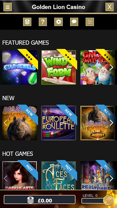 O Golden Lion Casino oferece diversos caça-níqueis em vídeo e um pequeno número de jogos clássicos. Jackpots progressivos também estão disponíveis, dando aos jogadores a chance de ganhar grandes prêmios em dinheiro.
