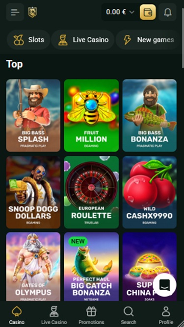 Existem seções de Cassino e Cassino ao Vivo , e aqui estão algumas das categorias disponíveis: Caça-níqueis, Jackpot, Compra de Bônus, Megaways, Vitória Instantânea, Game Show, Roleta , Blackjack , Bacará , Pôquer e muito mais.