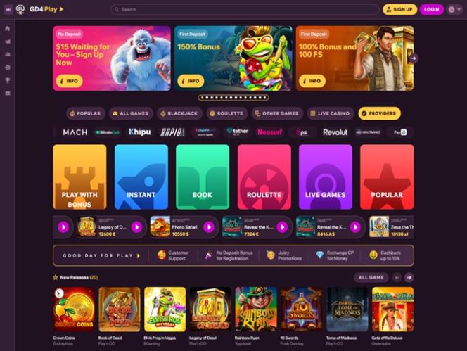 O GoodDayForPlay Casino é operado por Net Entertainment, Playtech, Amatic Industries, Novomatic, Play'n GO, playson, Quickspin, Thunderkick, Yggdrasil, Endorphina, IGT, Booongo, Spinomenal, Red Rake Gaming, Belatra Games, BGAMING, Evoplay, Pocket Games Soft, SmartSoft Gaming, Amusnet Interactive, Aristocrat, Ash Gaming, Blueprint Gaming, Greentube, Push Gaming, Konami, Apollo Games, RubyPlay, Rarestone Gaming, 3 Oaks Gaming, Spribe and Elbet e seus jogos são oferecidos por meio de uma plataforma online que permite jogar pelo navegador da internet. Um site para dispositivos móveis também está disponível para jogadores que desejam jogar em qualquer lugar.