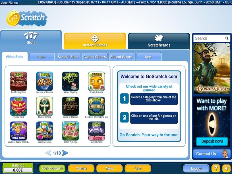 O GoScratch Casino é alimentado por Amaya, Net Entertainment, lightningboxgames, Play'n GO, Quickspin, Aristocrat, NeoGames and NextGen e os jogos do casino são fornecidos através de uma plataforma baseada na web.Outros jogos