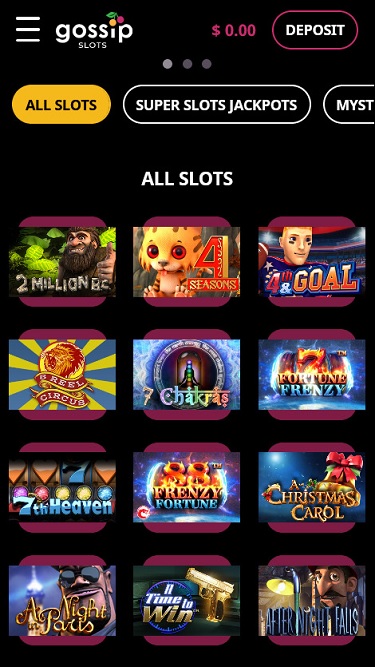 A maior seleção de jogos de cassino oferecida pelo Gossip Slots é distribuída pela BetSoft Gaming, que inclui uma grande variedade de slots 3D compatíveis com computadores e dispositivos móveis. Esses jogos possuem alguns dos melhores valores de produção da indústria de cassinos online e combinam recursos interativos que garantem a diversão.