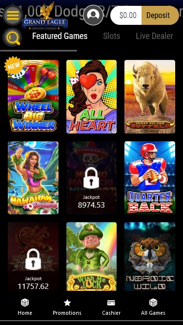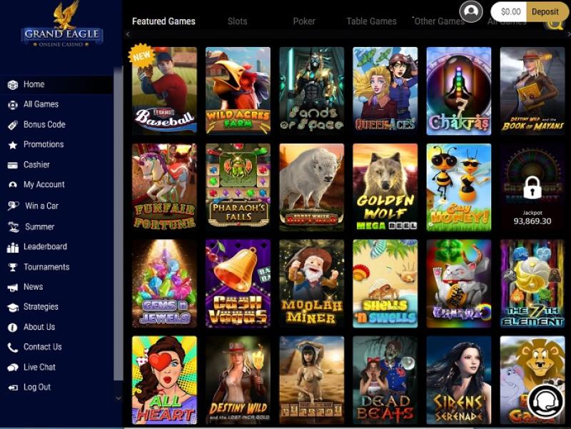 Os caça-níqueis predominam no Grand Eagle Casino, e os visitantes deste cassino poderão jogar jogos diferentes da maioria dos jogos no estilo RTG oferecidos por cassinos voltados para jogadores americanos. Infelizmente, parece que não há jackpots progressivos disponíveis no cassino.