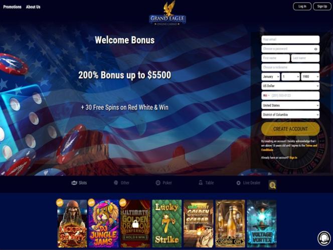 Grand Eagle não aceita jogadores dos seguintes países: Afeganistão, Ilhas Aland, Albânia, Alderney, Argélia, Samoa Americana, Andorra, Angola, Anguilla, Antártica, Antígua e Barbuda, Argentina, Armênia, Aruba, Austrália, Áustria, Azerbaijão, Bahamas, Bahrein, Bangladesh, Barbados, Bielorrússia, Bélgica, Belize, Benim, Bermudas, Butão, Bolívia, Bósnia e Herzegovina, Botsuana, Ilha Bouvet, Brasil, Território Britânico do Oceano Índico, Brunei, Bulgária, Burkina Faso, Burundi, Camboja, Camarões, Cabo Verde, Ilhas Cayman, República Centro-Africana, Chade, Chile, China, Ilha Christmas, Ilhas Cocos (Keeling), Colômbia, Comores, Congo, República Democrática do Congo, Ilhas Cook, Costa Rica, Costa do Marfim, Croácia, Cuba, Curaçao, Chipre, República Checa, Dinamarca, Djibuti, Dominica, República Dominicana, Equador, Egito, El Salvador, Guiné Equatorial, Eritreia, Estônia, Etiópia, Ilhas Falkland (Malvinas), Ilhas Faroé, Fiji, Finlândia, França, Guiana Francesa, Polinésia Francesa, Territórios Franceses do Sul, Gabão, Gâmbia, Geórgia, Alemanha, Gana, Gibraltar, Grécia, Groenlândia, Granada, Guadalupe, Guam, Guatemala, Guiné, Guiné-Bissau, Guiana, Haiti, Ilha Heard e Ilhas McDonald, Honduras, Hong Kong, Hungria, Islândia, Índia, Indonésia, Irã, Iraque, Irlanda, Ilha de Man, Israel, Itália, Jamaica, Japão, Jersey, Jordânia, Cazaquistão, Quênia, Kiribati, Coreia, República Popular Democrática da, Coreia, República da, Kuwait, Quirguistão, Laos, Letônia, Líbano, Lesoto, Libéria, Líbia, Liechtenstein, Lituânia, Luxemburgo, Macau, Madagáscar, Malawi, Malásia, Maldivas, Mali, Malta, Ilhas Marshall, Martinica, Mauritânia, Maurício, Mayotte, México, Micronésia, Estados Federados da, Moldávia, Mônaco, Mongólia, Montenegro, Montserrat, Marrocos, Moçambique, Mianmar, Namíbia, Nauru, Nepal, Holanda, Antilhas Holandesas, Nova Caledônia, Nova Zelândia, Nicarágua, Níger, Nigéria, Niue, Ilha Norfolk, Macedônia do Norte, Ilhas Marianas do Norte, Noruega, Omã, Ontário, Paquistão, Palácio, Palestina, Panamá, Papua Nova Guiné, Paraguai, Peru, Filipinas, Pitcairn, Polônia, Portugal, Porto Rico, Catar, Reunião, Romênia, Rússia, Ruanda, Santa Helena, São Cristóvão e Nevis, Santa Lúcia, São Martinho, São Pedro e Miquelon, São Vicente e Granadinas, Samoa, São Marino, São Tomé e Príncipe, Arábia Saudita, Senegal, Sérvia, Seicheles, Serra Leoa, Cingapura, Eslováquia, Eslovênia, Ilhas Salomão, Somália, África do Sul, Ilhas Geórgia do Sul e Sandwich do Sul, Sudão do Sul, Espanha, Sri Lanka, Sudão, Suriname, Svalbard e Jan Mayen, Suazilândia, Suécia, Suíça, Síria, Taiwan, Tajiquistão, Tanzânia, Tailândia, Timor-Leste, Ir, Toquelau, Chegado, Trinidad e Tobago, Tunísia, Peru, Turcomenistão, Ilhas Turks e Caicos, Tuvalu, Uganda, Ucrânia, Emirados Árabes Unidos, Reino Unido, Ilhas Menores Distantes dos Estados Unidos, Uruguai, Uzbequistão, Vanuatu, Vaticano, Venezuela, Vietnã, Ilhas Virgens Britânicas, Ilhas Virgens, EUA, Wallis e Futuna, Saara Ocidental, Iémen, Iugoslávia, Zâmbia e Zimbábue.