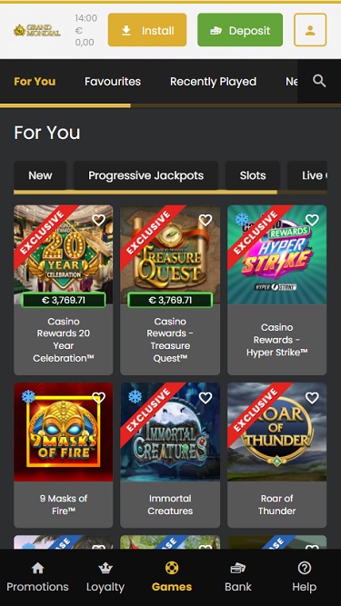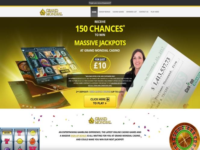 O Grand Mondial Casino abriu as suas portas em 2006 e é um dos vários casinos pertencentes e operados pela Casino Rewards. O casino é geralmente visto de forma positiva pelos seus clientes, que apreciam a biblioteca de jogos com mais de 400 títulos e o bom serviço, mas nem sempre aprovam os limites de levantamento para ganhos que não sejam jackpots.Informações do cassino