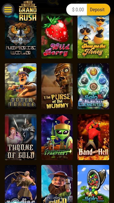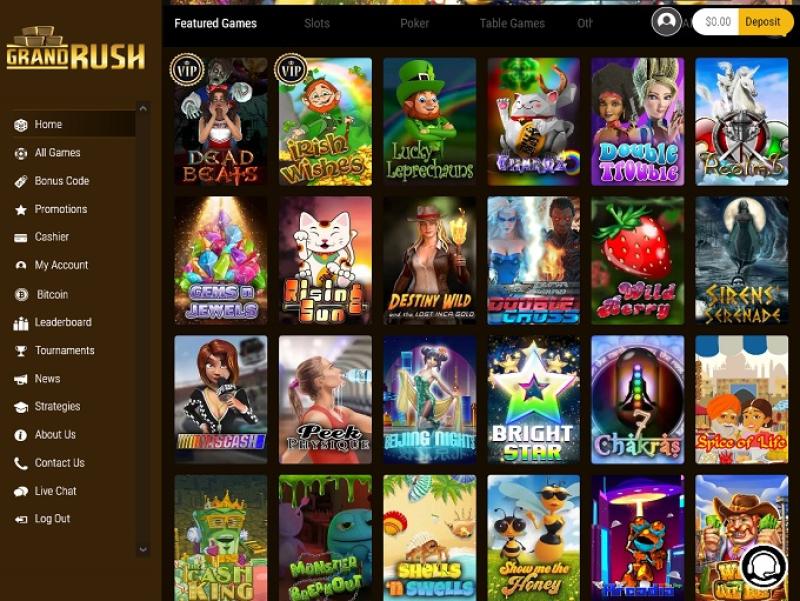 Como já mencionamos, o Grand Rush oferece uma biblioteca de jogos de tamanho modesto. A operadora tem parcerias com a Rival, a Nucleus Gaming e alguns outros desenvolvedores de software para cassinos online .