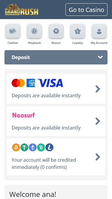 A seção de bônus do Grand Rush Casino esconde diversas ofertas promocionais interessantes. Tanto os novos jogadores quanto os membros ativos do cassino encontrarão bônus que podem atender às suas preferências, já que há sorteios e torneios de caça-níqueis online, além de bônus diários de cassino. No entanto, esta seção poderia ser melhor equipada com mais oportunidades e ofertas.