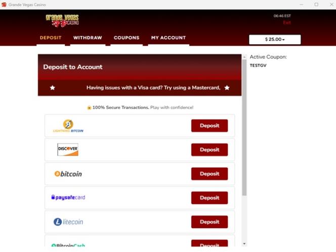 Abaixo está uma lista dos bônus atualmente oferecidos no Grande Vegas Casino.