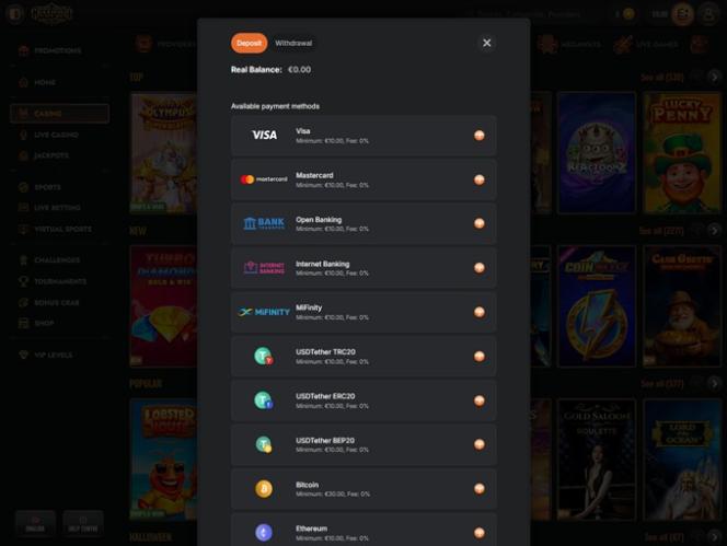 O sistema de pagamento do cassino inclui diversas opções , como transferências bancárias, carteiras de criptomoedas, cartões de crédito e débito, Neteller, Skrill, Revolut e outras carteiras eletrônicas e sistemas bancários online populares. Para confirmar se uma determinada opção está disponível em sua jurisdição, recomenda-se visitar a página de Pagamentos, selecionar seu país e moeda e verificar a lista de métodos de pagamento aceitos.