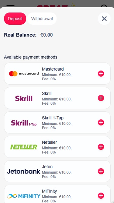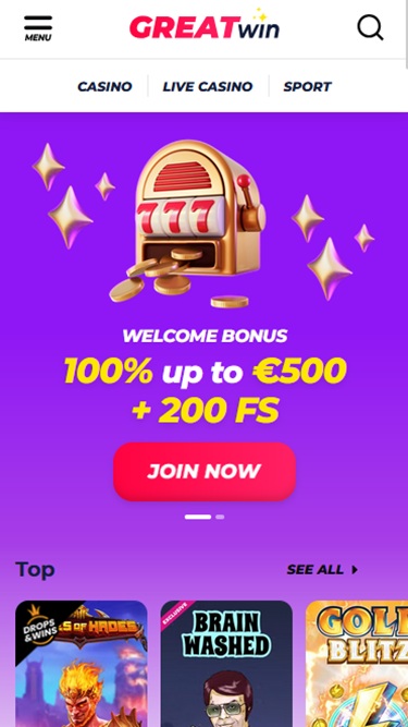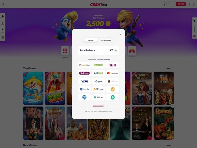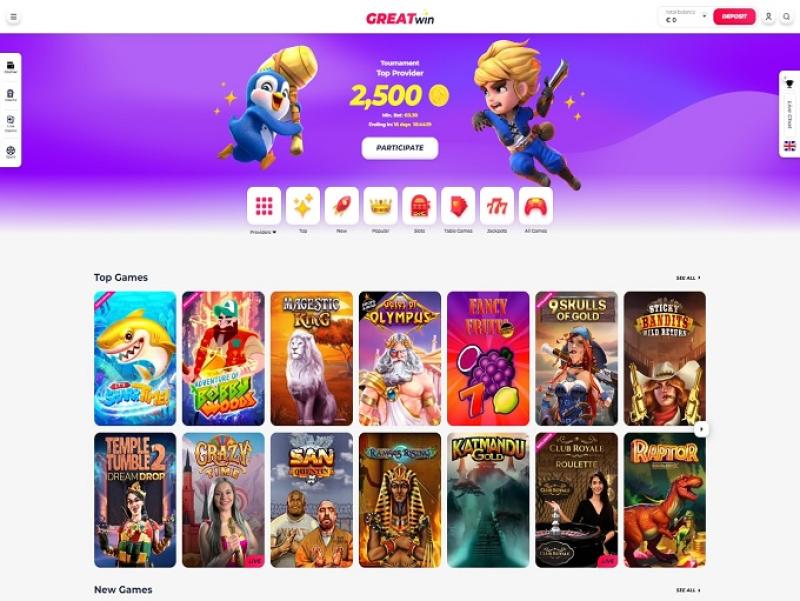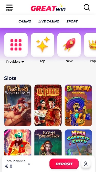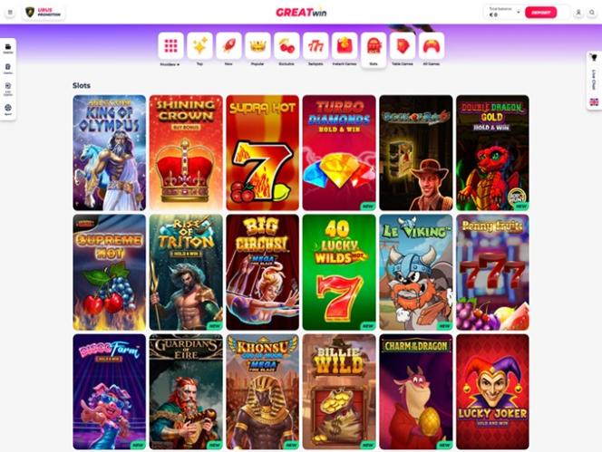 O GREATwin Casino tem um design limpo e minimalista, com muitos detalhes atraentes. Tudo está no seu devido lugar e a convidativa oferta de jogos ocupa a área central do site.