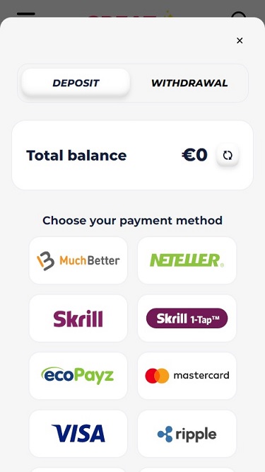 IncrívelMinha primeira experiência com a Greatwin foi muito boa! Boa variedade de jogos. Site com layout bacana. Suporte por chat rápido e amigável. O saque foi processado em 24 horas, sem necessidade de enviar nenhum documento KYC. Ótimo trabalho!