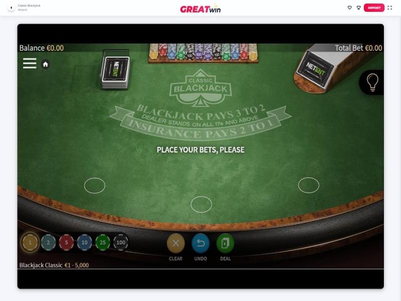 GREATwin Casino Blackjack (Net Entertainment)Expandir