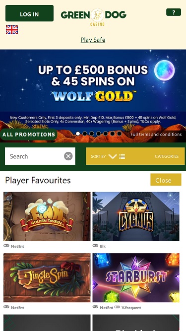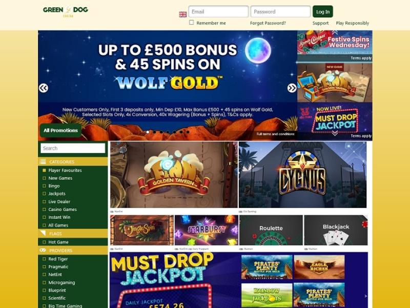 O Green Dog Casino é um site de apostas online pertencente e operado pela Nektan (Gibraltar) Ltd. O casino foi fundado em 2016 e tem como foco principal o mercado de apostas móveis, oferecendo uma ampla variedade de jogos de alguns dos principais desenvolvedores, além de pagamentos muito rápidos e termos de bônus razoáveis, tornando o Green Dog Casino um bom lugar para jogar.Informações do cassino