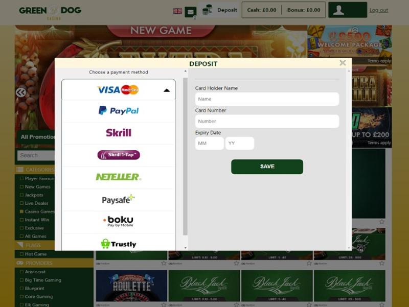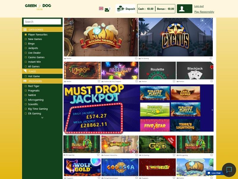 O Green Dog Casino é alimentado por Microgaming, Net Entertainment, Big Time Gaming, ELK Studios, Evolution Gaming, lightningboxgames, Realistic Games, Felt Gaming, IGT, Games Global, Aristocrat, Blueprint Gaming, Merkur Gaming, Nektan, NextGen, CORE Gaming, Scientific Games and Foxium e oferece seus jogos por meio de uma plataforma de jogo instantâneo baseada na web. O foco principal é o mobile, portanto, a compatibilidade é maximizada para dispositivos de todos os formatos e tamanhos.Blackjack