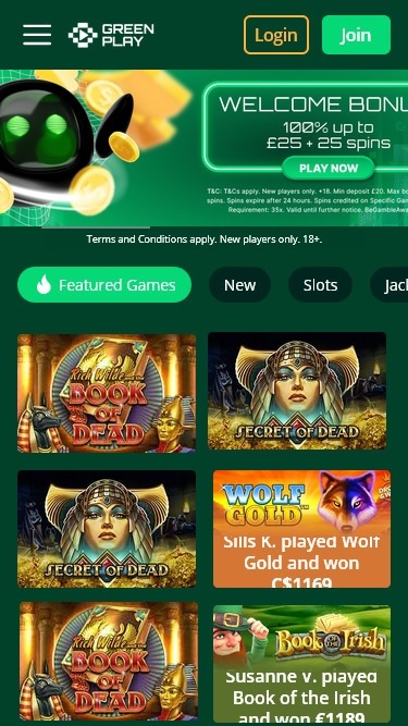 O cassino Greenplay é multiplataforma, otimizado para desktop e dispositivos móveis, mas é importante mencionar que a versão para desktop possui uma barra fixa na parte superior da página, logo abaixo do cabeçalho do cassino, o que parece um pouco antiquado. Tirando isso, achamos a plataforma bastante agradável e fácil de navegar, e o processo de cadastro foi rápido e direto.