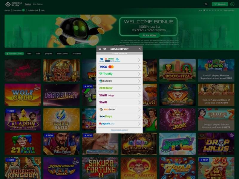Como esperado, a interface foi projetada em vários tons de verde, o que é absolutamente adequado para um cassino online com essa reputação.