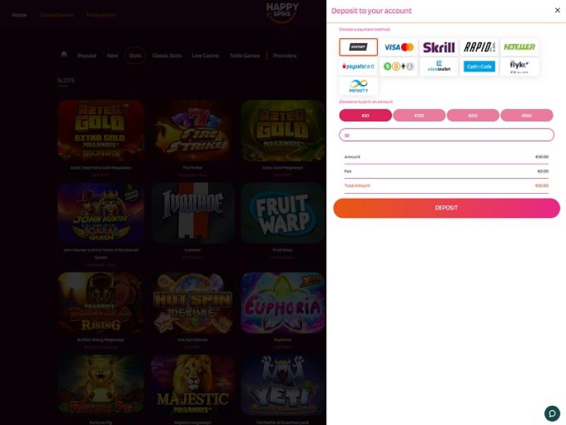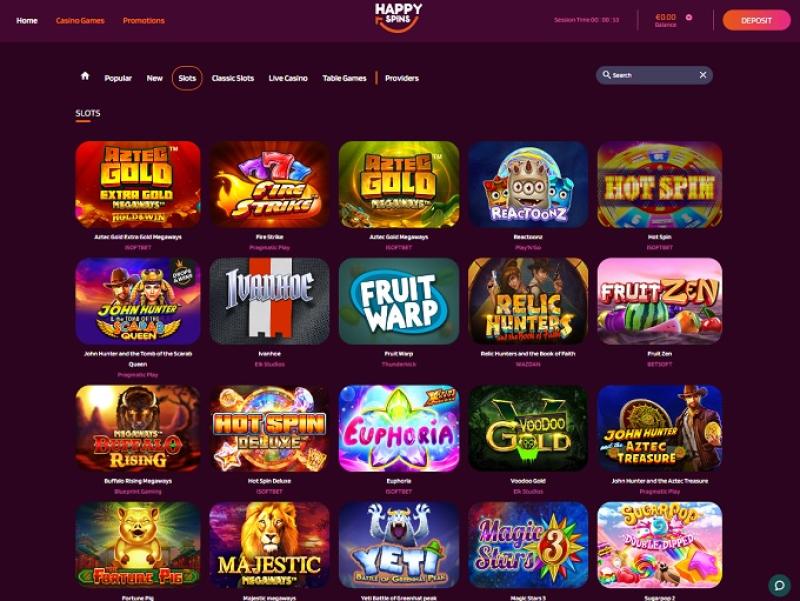 HappySpins é uma marca cujo nome se refere a "girar" os rolos dos jogos de caça-níqueis, mas considerando a longa lista de fornecedores de software, não é nenhuma surpresa que este cassino online ofereça uma gama completa de jogos de cassino e não apenas caça-níqueis de vídeo.