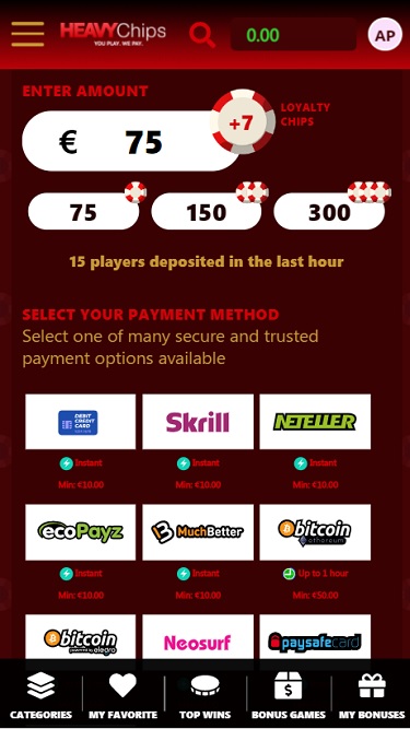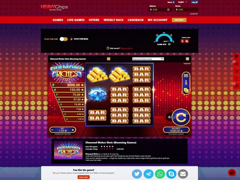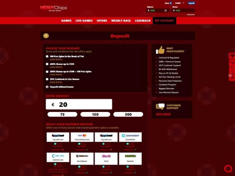 O HeavyChips Casino é operado pela Microgaming, Net Entertainment, BetSoft, 1x2gaming, Amatic Industries, Big Time Gaming, ELK Studios, Evolution Gaming, Ezugi, Habanero Systems, iSoftBet, Oryx, playson, Quickspin, Relax Gaming, SOFTSWISS, Thunderkick, Yggdrasil, Endorphina, Wazdan, Betgames, Booming Games, Stakelogic, Pragmatic Play, Nolimit City, Felt Gaming, Red Tiger Gaming, Red Rake Gaming, Fantasma Games, SYNOT Games, Kalamba, Revolver Gaming, Skywind, Spinmatic, Spadegaming, BGAMING, Northern Lights Gaming, Electric Elephant Games, Pocket Games Soft, Bulletproof Games, Gluck Games, Spearhead Studios, Swintt, HungryBear Gaming, Lady Luck Games, Games Global, Amusnet Interactive, Wizard Games, Blueprint Gaming, CT Interactive, GamesOS, Leander Games, Merkur Gaming, Pariplay, Push Gaming, Tom Horn Gaming, Gamomat, Reel Time Gaming, BF Games, Bally Wulff, Storm Gaming Technology, Wild Streak Gaming, Golden Hero, 4ThePlayer, Gamevy, NetGaming, ReelPlay, Japan Technicals Games, BB Games, Black Pudding Games, Hacksaw Gaming, Max Win Gaming, Arcadem, Slotmill, SilverBack Gaming, Peter And Sons, Armadillo Studios, FlipLuck and Lion Gaming e seu software está disponível tanto em uma plataforma online quanto para download. Um site para dispositivos móveis também está disponível para quem deseja jogar em seus smartphones ou tablets.