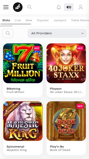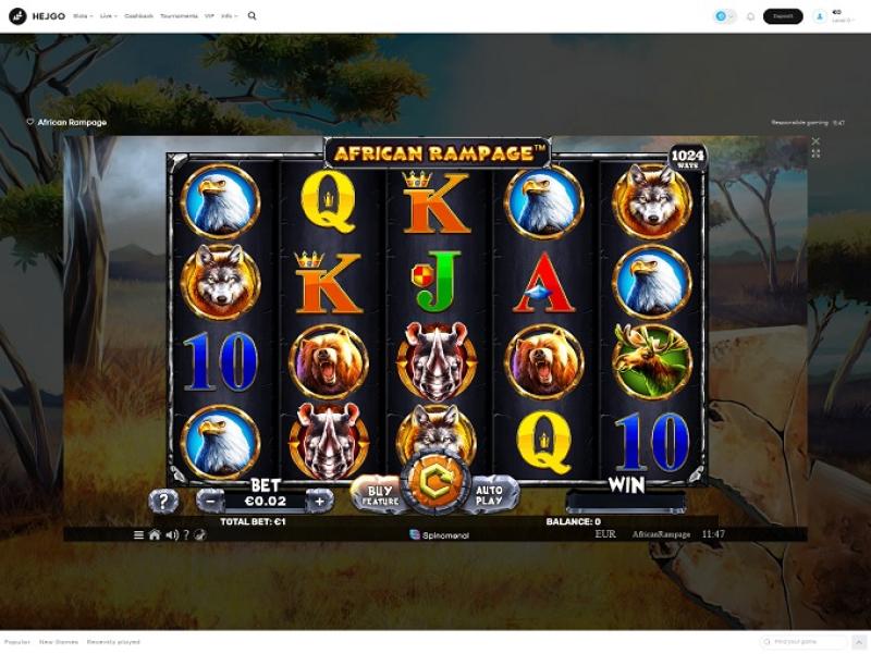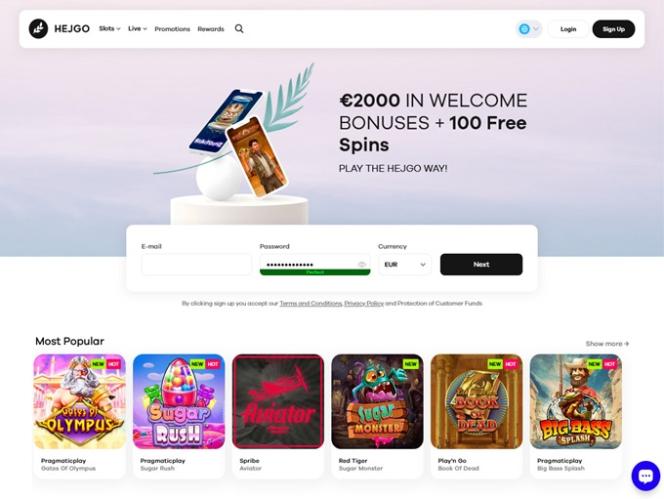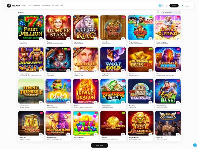 O Hejgo possui duas seções principais: Slots e Jogos ao Vivo.