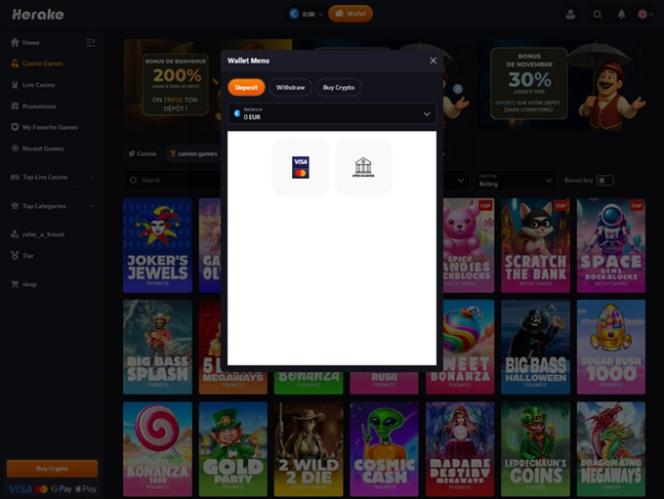 O Herake acompanha todas as tendências do setor e oferece uma coleção enorme e diversificada de slots, feita sob medida para todos os tipos de jogadores, independentemente do seu nível de habilidade. O repertório do cassino inclui clássicos atemporais e lançamentos de última geração, garantindo que haja algo para cativar e entreter todos os jogadores.