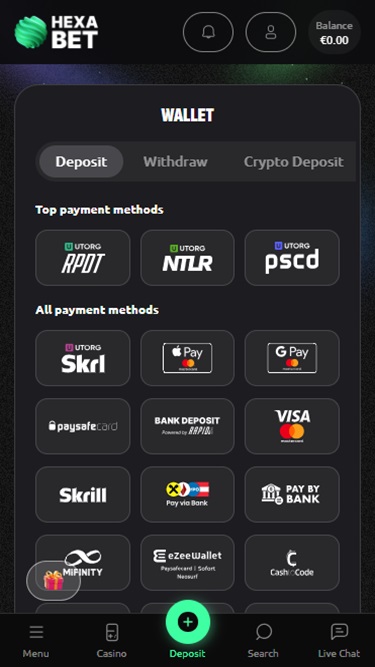 Os jogos instantâneos e de crash também têm uma seção dedicada no Hexabet Casino, oferecendo uma excelente opção para jogadores que preferem jogos rápidos que não exigem habilidade ou muito esforço para se divertir. Experimente Plinko, Aviatrix, Limbo XY, Penalty Shoot-Out e Meteoroid.